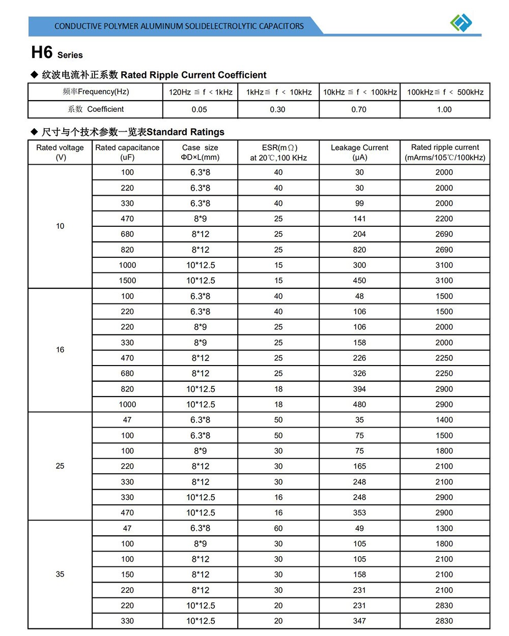 固液混合鋁電解電容H6系列