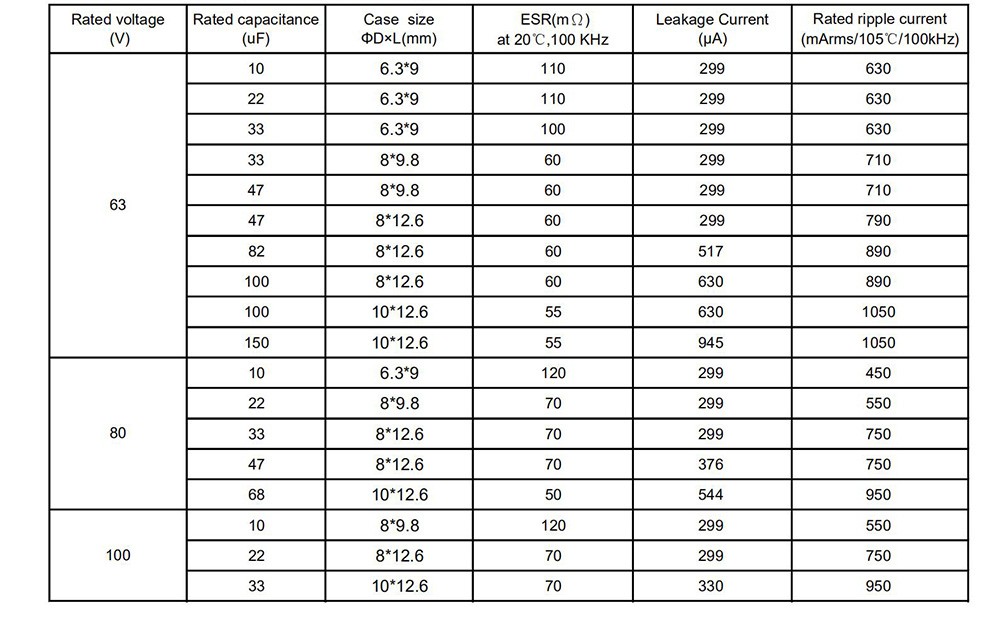 ● Low ESR, High ripple, miniaturized, high temperature ● SMD type: lead free reflow soldering condition at 260℃ peak correspondence ● RoHS Compliant